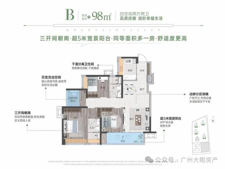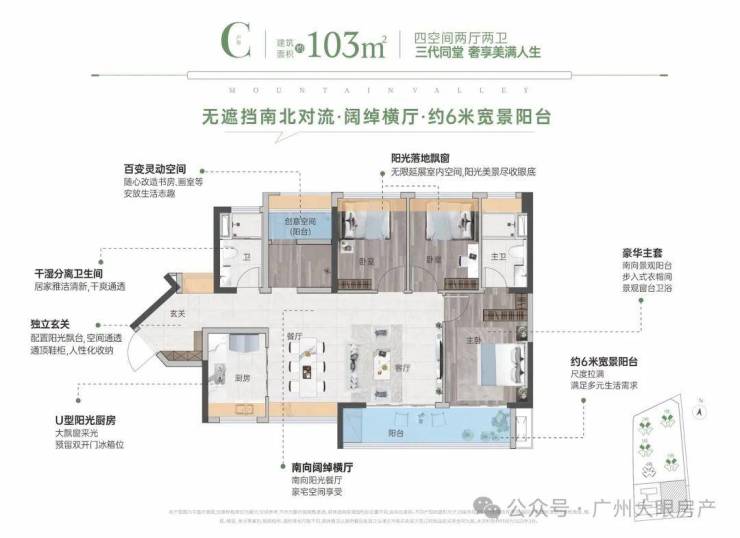超6米宽MAX宽景阳台,南北通透一揽山林景色
