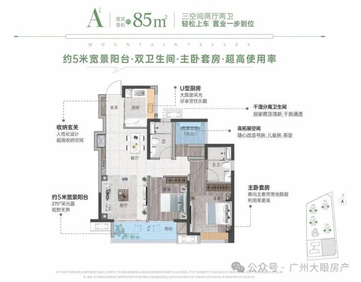 85㎡ 3房2厅2卫,南向3房带主套设计,生活更随心