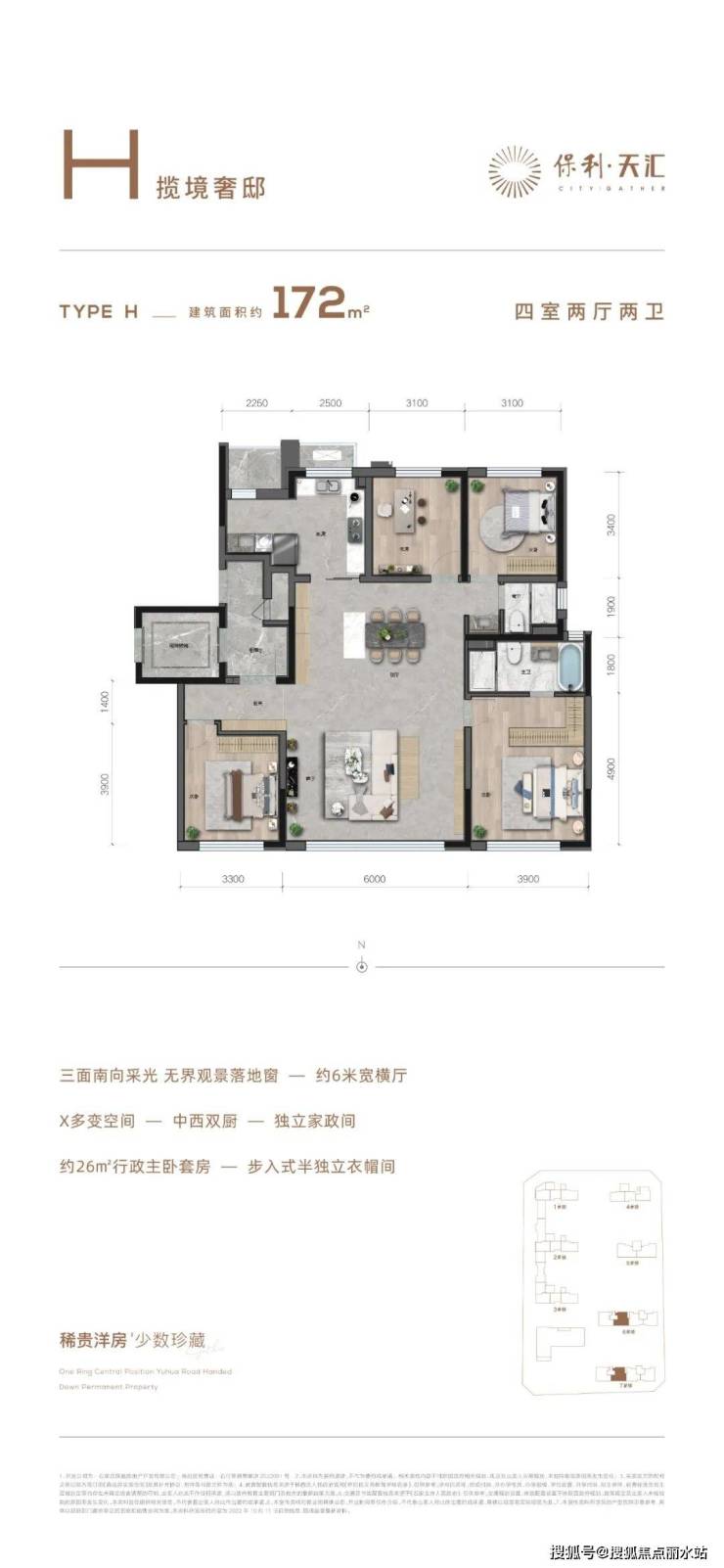 产品亮点:独立电梯厅、全明户型、6m宽厅、独立家政间、设备平台全赠送、私密性强。