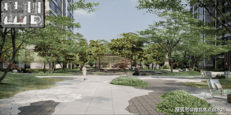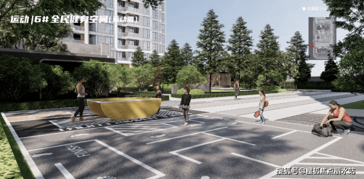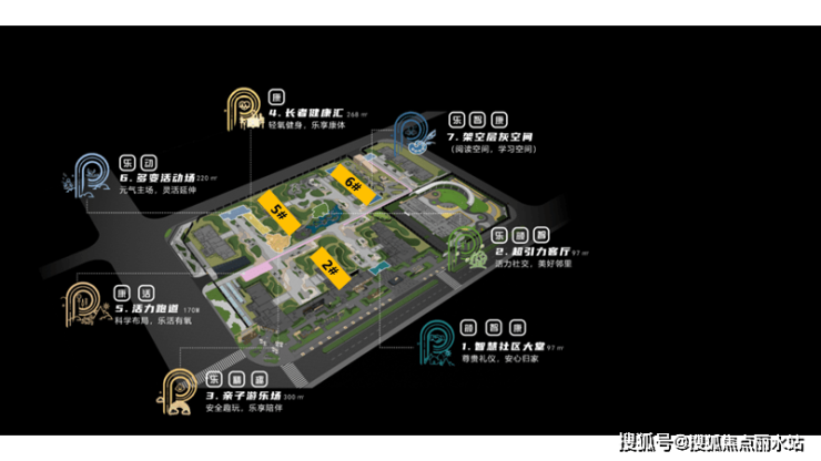 (1)楼栋亮点:南侧主入口核心景观、下沉庭院,东侧社区核心水景廊亭