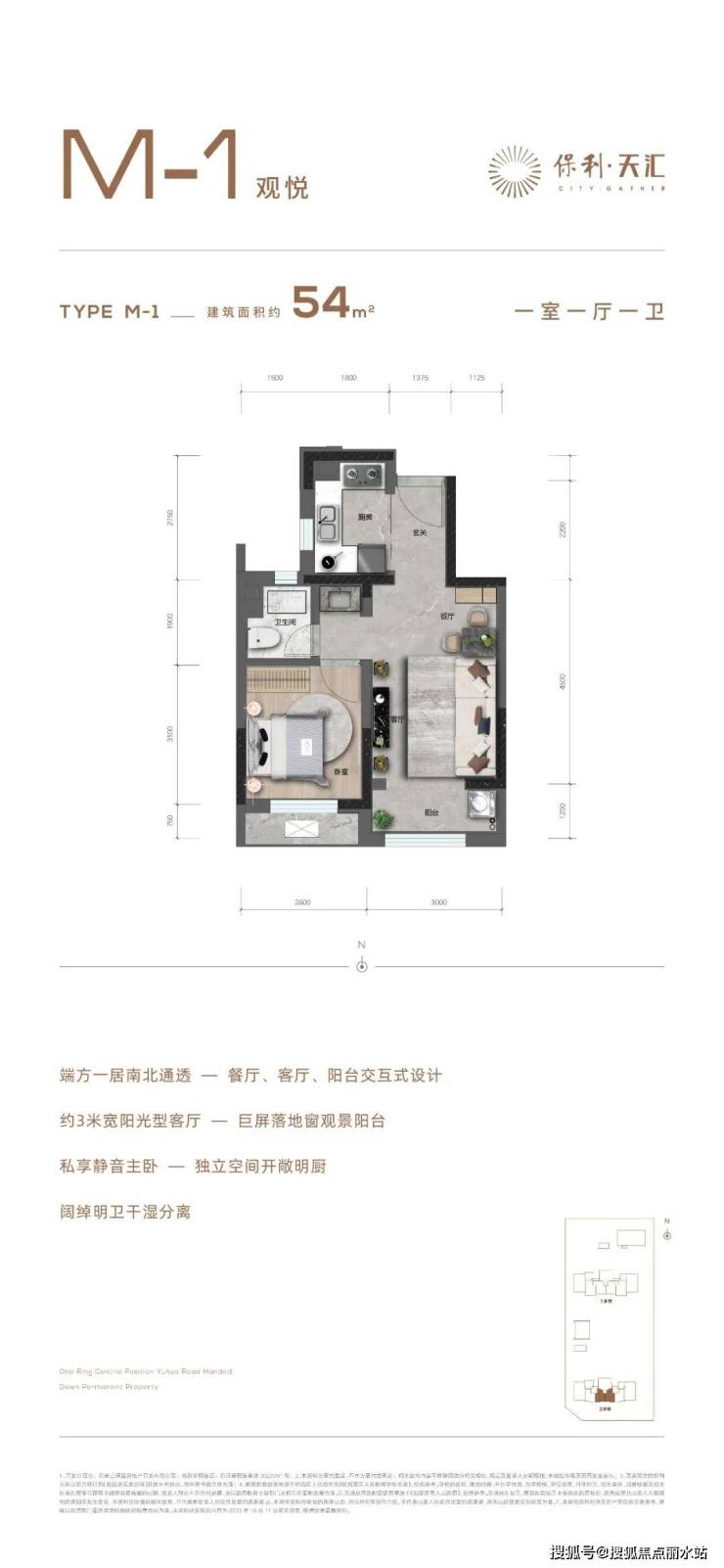 户型亮点:大一房、明厨明卫、干湿分离、餐厨一体、有阳台!
