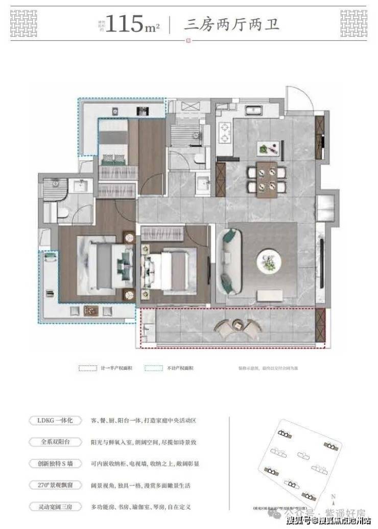 99-115㎡三房:首改优选,南向双卧+客厅阳台通透布局;