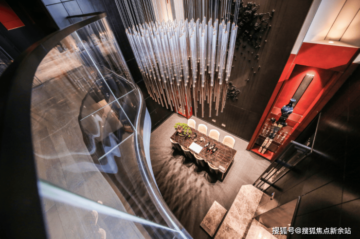 再搭配约6.4米高的客厅挑空,以平层2.5倍的高度,打破空间束缚,极为大气奢阔。