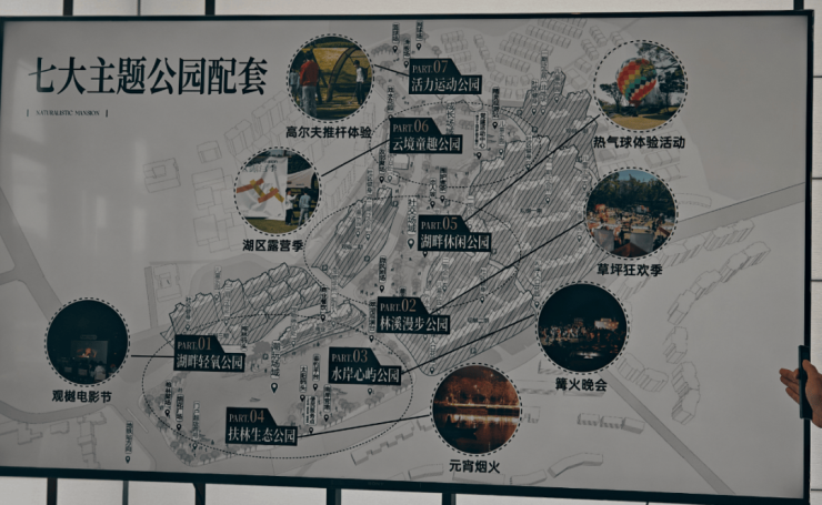 环境资源与相关配套,月亮湖与太阳湖已经能形成“生态自循环”,项目也规划了七大主题公园+湖岸美学会所;