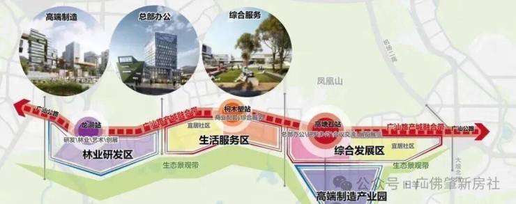 未来片区打造3.8公里广汕路产城融合带,形成高塘石、柯木塱、龙洞三大TOD发展中心,高塘石规划综合发展区及宜居社区。