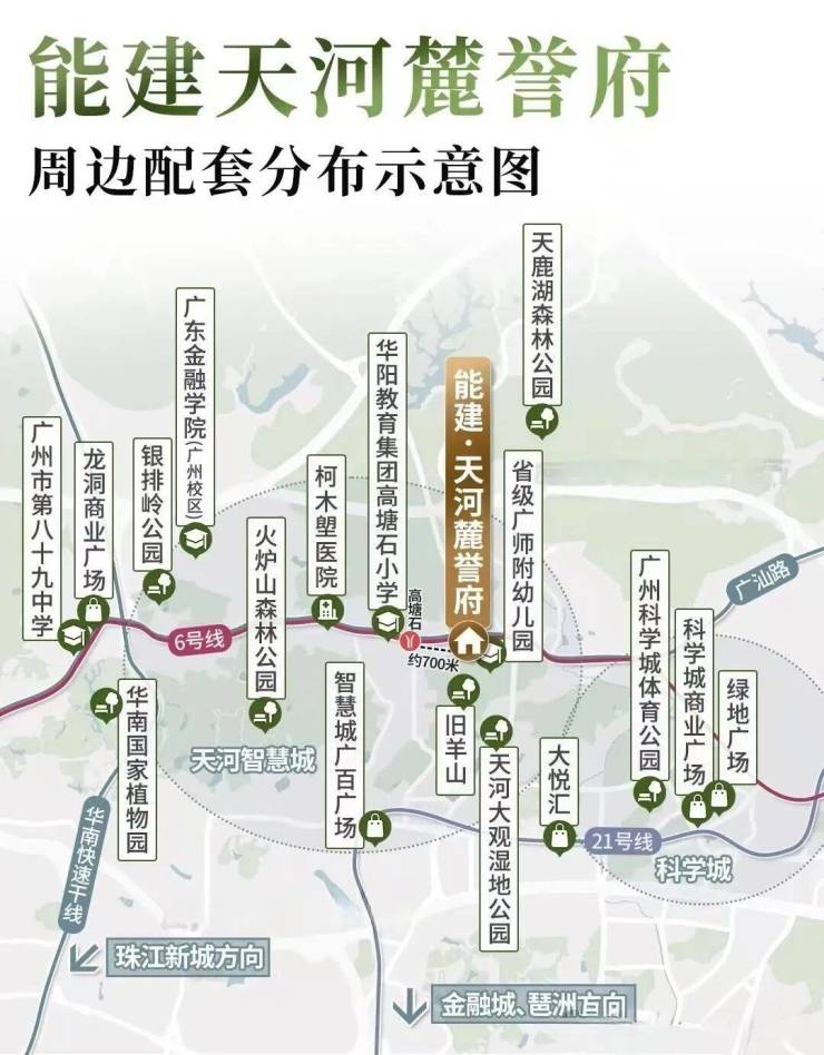 交通:步行700米即达6号线高塘石站,30分钟快速到达珠江新城、金融城、琶洲三大城市CBD,占据城市地铁资源。