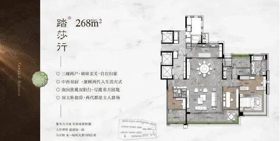 我们再来看看此次加推的268平的大面积户型,作为项目的旗舰,暗藏着哪些巧妙的设计?