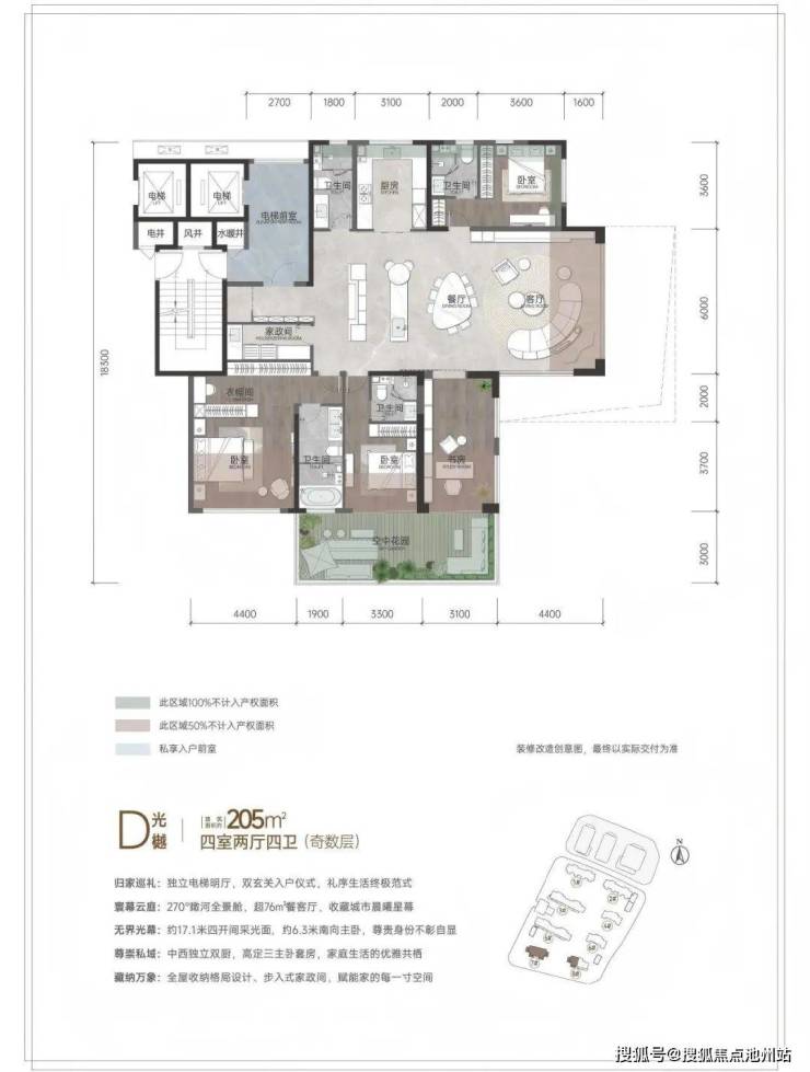 步入室内,全赠送的景观阳台犹如天然的生活延伸带,既可打造为空中花园,也能化身阳光茶室。飘窗经过巧妙改造,成为兼具收纳与休憩功能的私密角落;露台的扩容设计,让星空晚宴、家庭聚会拥有专属场地;私家电梯厅则带来尊崇归家体验,灵动空间更可根据家庭需求自由变换为书房、儿童房。
