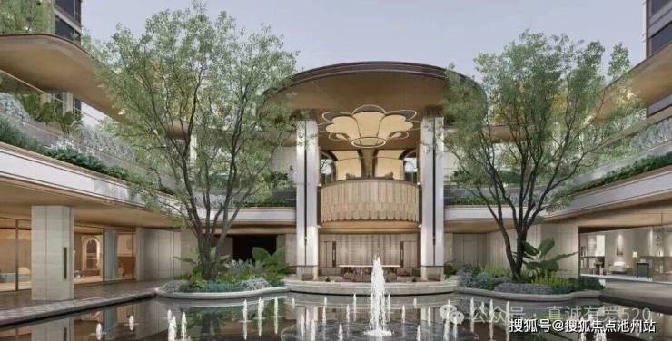南住宅区打造约1800㎡下沉庭院双层艺术会客厅,嵌入式景石水景与双层社交客厅,重塑高端圈层生活场景,赋予“一院藏一世界”的稀缺价值。