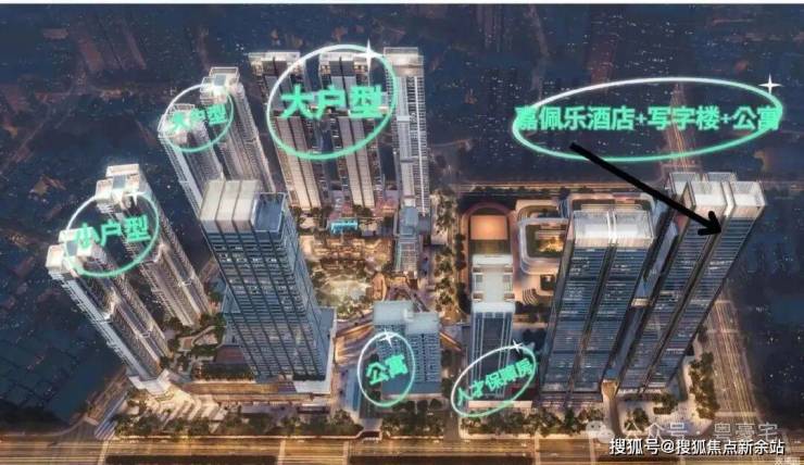 项目占地面积约2.18万㎡,规划总建面面积约32.3万㎡,由5座超高层+1座小高层建筑,外加一个下沉休闲广场及环广场裙房商业组成。