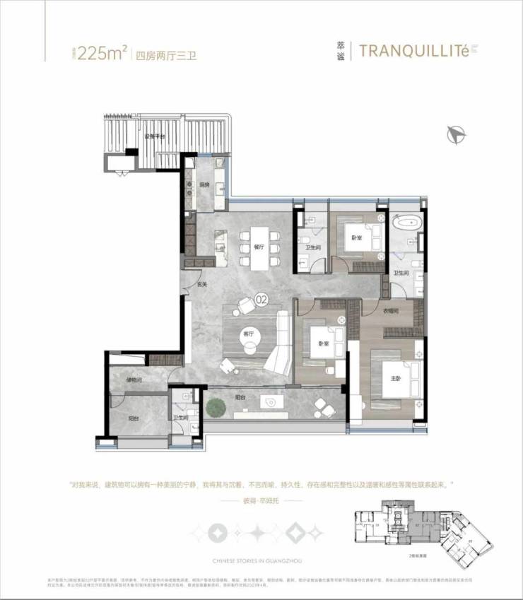 琶洲樾华樾的户型从225平方米至329平方米不等,均为大户型设计,主力户型为建面约255㎡和约329㎡。