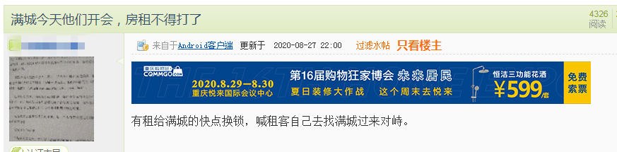 不过后续有人表示没有跑路,说是朋友圈看到的满城托管前员工发的,相关人士给的答复:今年2月满城已被成都青客公司收购(原来满城是青客旗下的公司),此次跑路事件是因为青客总部没拨资金导致满城无力应对,满城公司负责人跑去成都总部申请解决资金问题了。青客公司的领导下周会来重庆解决这个事情,满城可能不会跑路了,期待事情圆满的解决,不会给业主和租客造成资金损失。