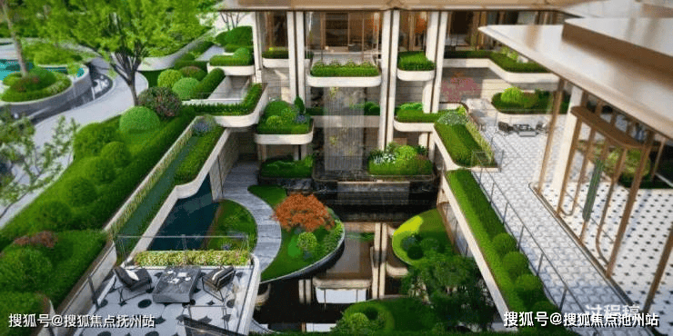 公区规划有下沉式庭院、会所、恒温泳池、健身房、景观水系、风雨连廊、架空层活动区等配置。
