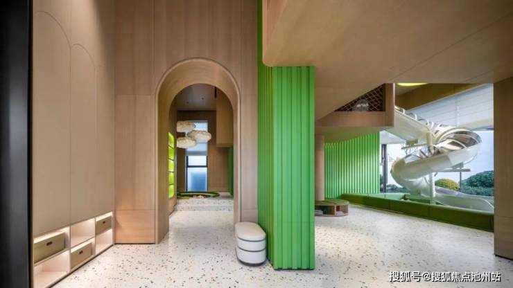 沐云川的「全龄化社区」理念,带来全新的空间体验:架空层内升级挑高约4.9米的室内童玩区,书享阅读、瑜伽空间等室内设计也全新升级;在楼下就能体会到每一页书、每一次肢体伸展蕴藏的鲜活。