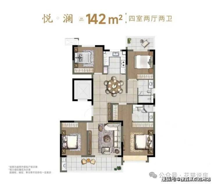 其中142平有两种设计,除了四叶草之外,还有LDKB户型,三开间朝南双卧朝南,左静右动,餐客厨阳台一体化设计,更利于家人互动。