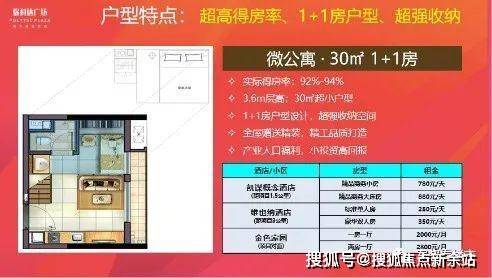 举例说明:总价75万的20平公寓,每平米租金保底60/元+途家-斯维登酒店经营分成,20平公寓预计可租2300/元