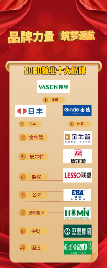 本次活动共有全国200余家管业企业参与到票选活动当中。皮尔特管业共计收货网友选票32655张,排名2020年度管业十大品牌网络票选活动第五名。这32655张网络选票,不仅仅是一张普通的选票,更是一份份来自消费者、用户的一份份信任。