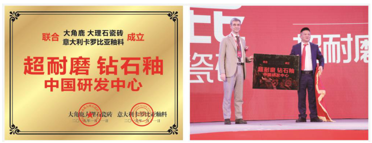 大角鹿瓷砖的“超耐磨钻石釉”技术成为该品牌迅速占领市场的巨大优势,作为全球排名前列研发“超耐磨钻石釉”的瓷砖品牌,大角鹿与全球排名前列的釉料公司——意大利卡罗比亚釉料联合成立“超耐磨钻石釉”中国研发中心,专门研究如何长期保留天然之美。