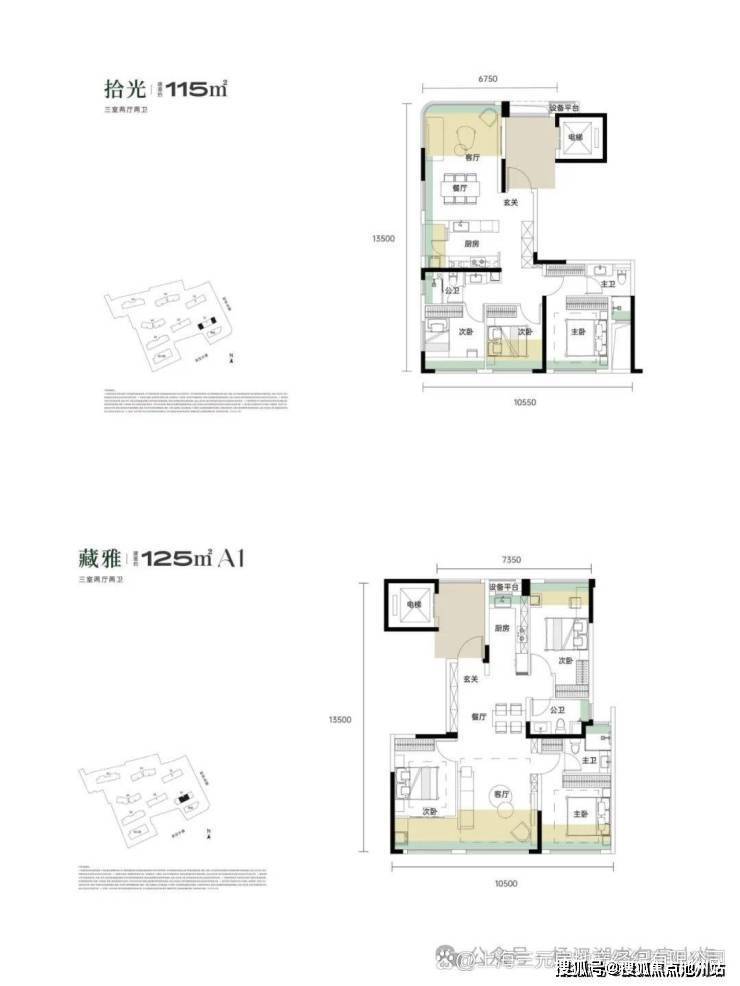 目前项目释放出两种面积段的户型图,首开1号楼,总层高21层,2T2户(独户设计)一个是115户型125户型都是三房的户型,四代住宅。115户型得房率98%左右,125户型得房率95%左右。