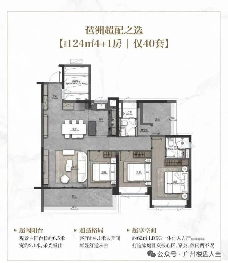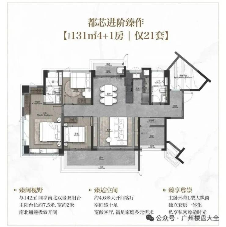 约131㎡同样刷新琶洲小面积天花板,如入户设计了拐角玄关。南北对流双阳台,南向阳台长约7.5米!搭配LDKG一体化,突破空间局限,拓宽了娱乐、互动、社交等多维场景。主套L型衣帽间、环幕大飘窗,躺床上便能欣赏窗外的“巨幕4K景观大片”。