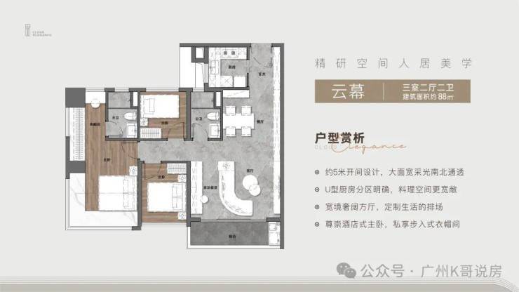 云筑上品规划了5栋住宅,为了采光最大化,所有楼栋都是采用蝶式塔楼的设计,新规后的项目,所以户型使用率方面都超过100%。
