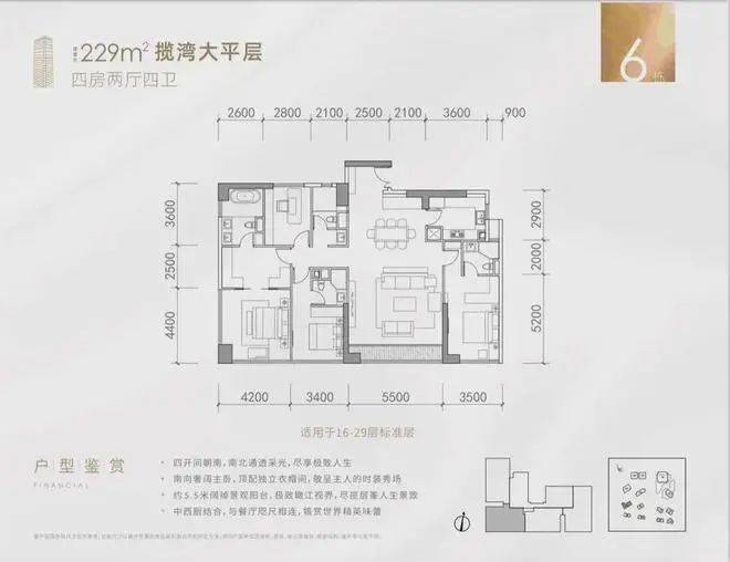 6栋望江公寓,总高43层,15、30楼是避难层,24年6月交,中区(16~29层:206、232、261㎡,5梯4户);低区(3~14层:98、146、143、151、161 ㎡,3梯7户,在售10、11楼)