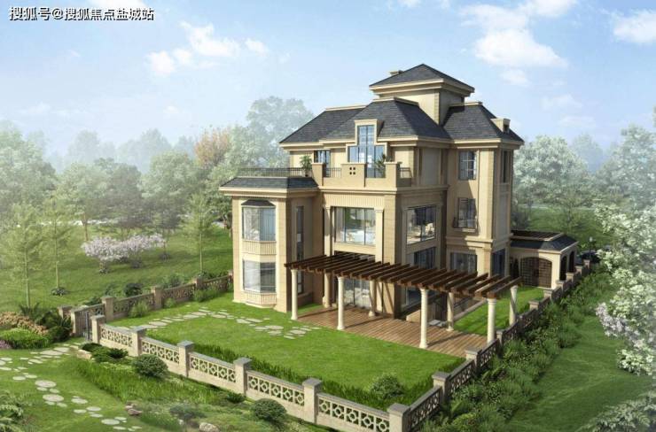 来看一下实拍图,别墅长这样:前排法式风独栋、后排英伦双拼~