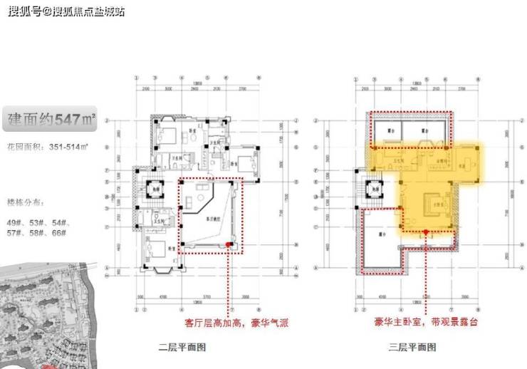 建面约547㎡独栋别墅,花园面积351-514㎡