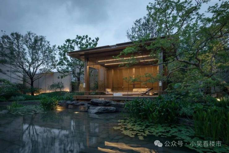 以园林为例,整体以《梁园飞雪图》画中意境为设计蓝本,并引入曲水飞虹、万倾涵碧、松间、观澜、林隐等景观组团,营造了极具仪式感的“五进式”归家礼序。