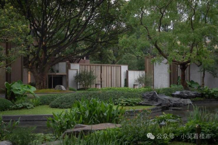 当你穿过繁华热闹的街道回家,这里又别有一番意境。穿过高低错落的绿植,途经古榕环岛聚场、半亭戏台、翰林雅庭......“五进式”归家礼序,给人一种别致的东方意韵美。