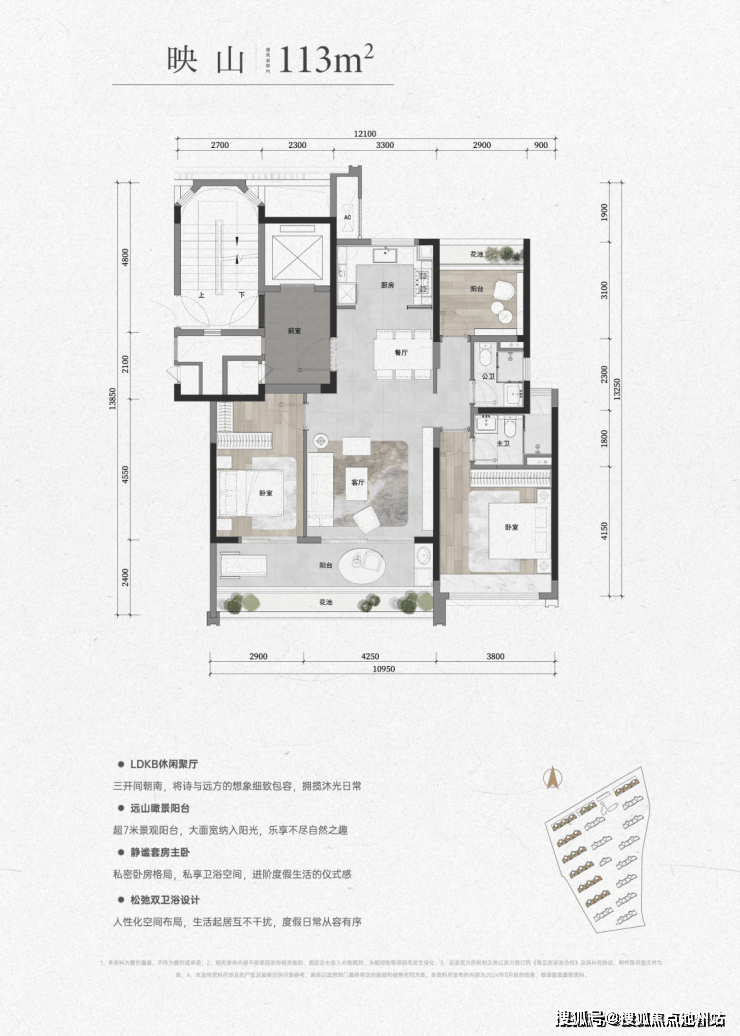 户型设计上,项目提供建面约 113㎡、128㎡三房和 143㎡四房多种选择,每一款户型都亮点满满。以 113㎡户型为例,约 8.48㎡的私享前厅可根据个人喜好自由打造;约 50㎡的社交巨厅,重新定义生活仪式感;约 17㎡的热带花园阳台,为生活提供了惬意的户外延伸空间;约 22㎡的主卧大套房,营造出开阔舒适的居住空间。该户型还能根据生活场景灵活切换两居或三居模式,满足家庭不同阶段的需求。
