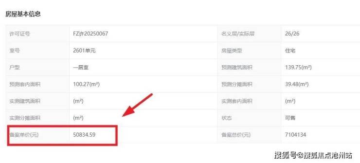 其中单价最高的房源为5#2601单元,预测建筑面积139.75平米。备案单价为50834.59元/平米,备案总价7104134元。