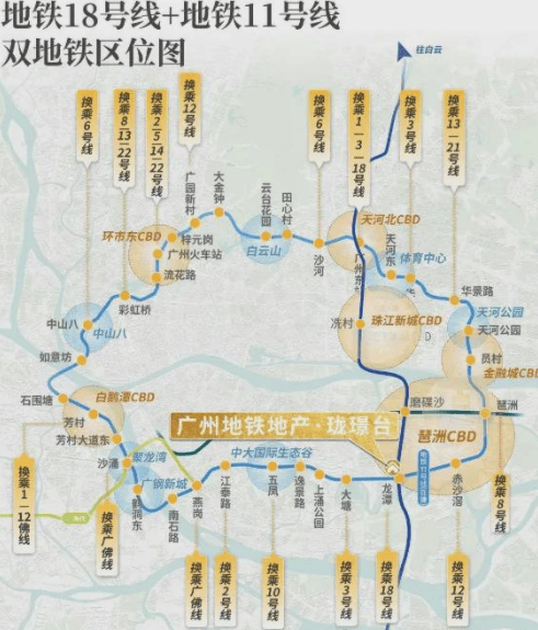 交通配套是项目的突出优势,作为双地铁上盖楼盘,18 号线已开通,1 站到琶洲、2 站直达珠江新城,通勤时间控制在 15 分钟内;在建的 11 号线是环线,未来能直达白云新城、广州东站等枢纽。