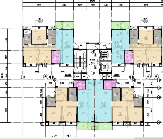 本次公示披露了项目1栋和2栋的平面图,皆2梯4户设计。