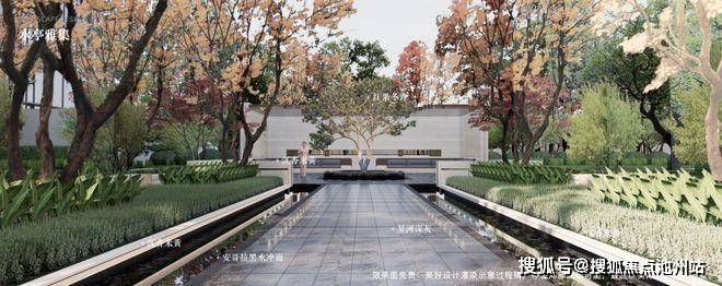 约22米礼序长廊以大量水景搭配造型乌桕、红果冬青、丛生香橼等,打造不一样的景观归家路。