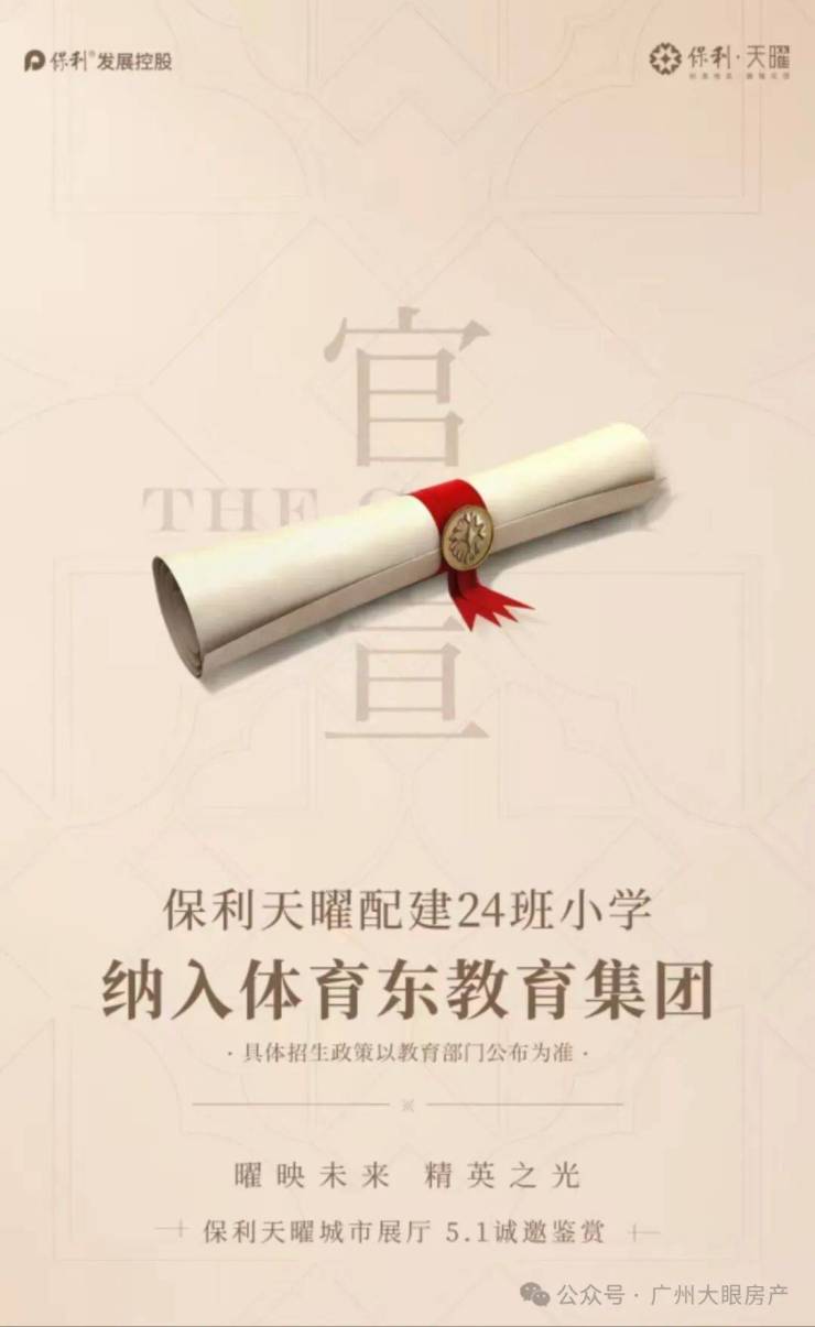 1,自带9年教育资源,官宣!天曜配建24班小学,纳入体育东教育集团720地块将配建一所6班幼儿园,能填补天河地区学位预警的需求。