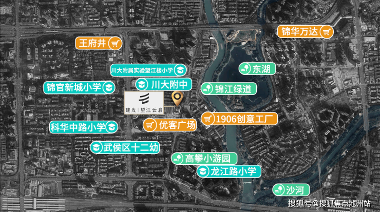 文化:小学包括川大附属实验小学望江楼校区、锦官新城小学,中学则有川大附属中学、成都石室锦城外国语学校、棕北中学红美术馆、域上和美先锋剧场、成都音乐厅、四川大学博物馆等。
