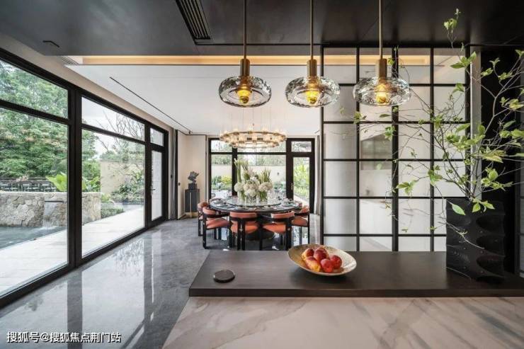 收官的合院,只做了地上两层,这在全杭州都已经很少见,落地面积一拉开,平层空间就更阔绰。内部布局上,还讲究起了视距,像餐厅和客厅既各自独立,又能通过庭院相互对望;地下空间有了更多的自然采光,沿湖排名前列排房子的大露台上可以尽享湖景……