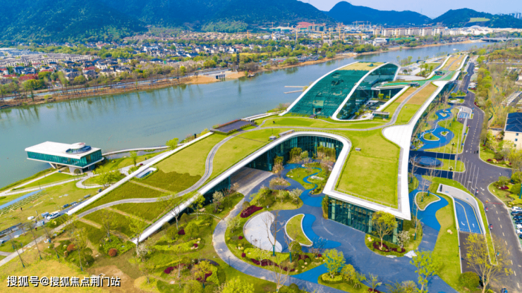 在万科·公望的斜对角,还建起了一座水上运动中心,要承担亚运会赛艇、皮划艇等项目的比赛,建筑设计参照了《富春山居图》中的山水形态,场馆就像隐在了山水画里。