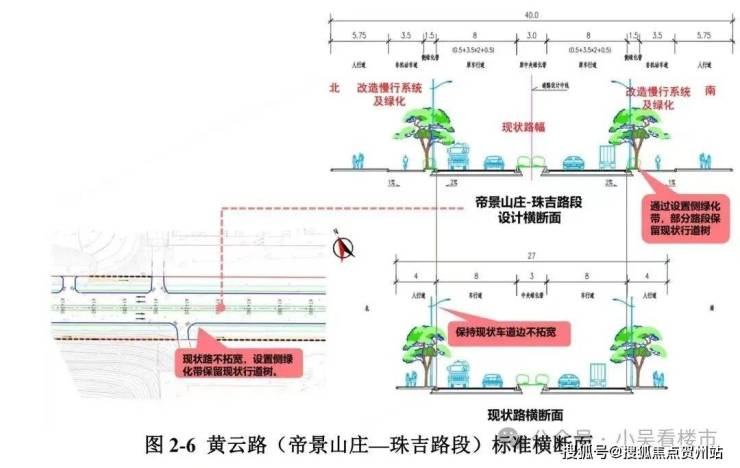 剩余部分,帝景山庄段,以及奶厂-珠吉段,都是在提升现有道路质量的同时,强化两侧绿化带及人行道。