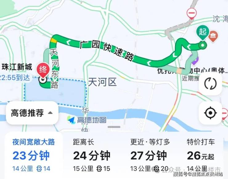 自驾去往珠江新城:走悦景路转到奥体路,再转大观南路至车陂路,再接广园快速至天河东路,全程14公里,耗时23分钟左右。