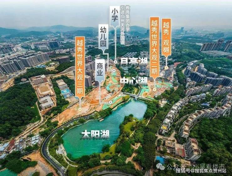 如连片发展后,世界大观坐拥天河区稀缺景观——约5.3万㎡月亮湖和太阳湖,还背靠绿化山体,即越秀·观樾依山傍水。