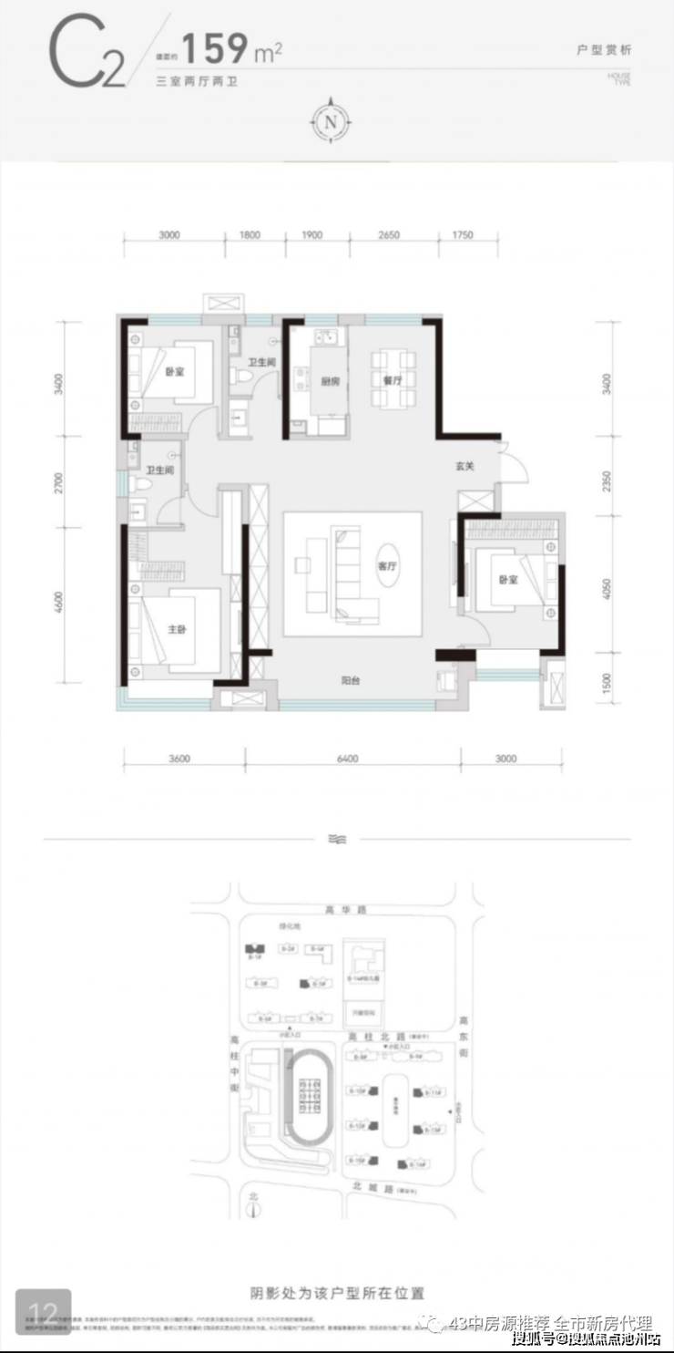 【面积】:129㎡ 132㎡ 147㎡ 159㎡全部为三室两厅两卫
