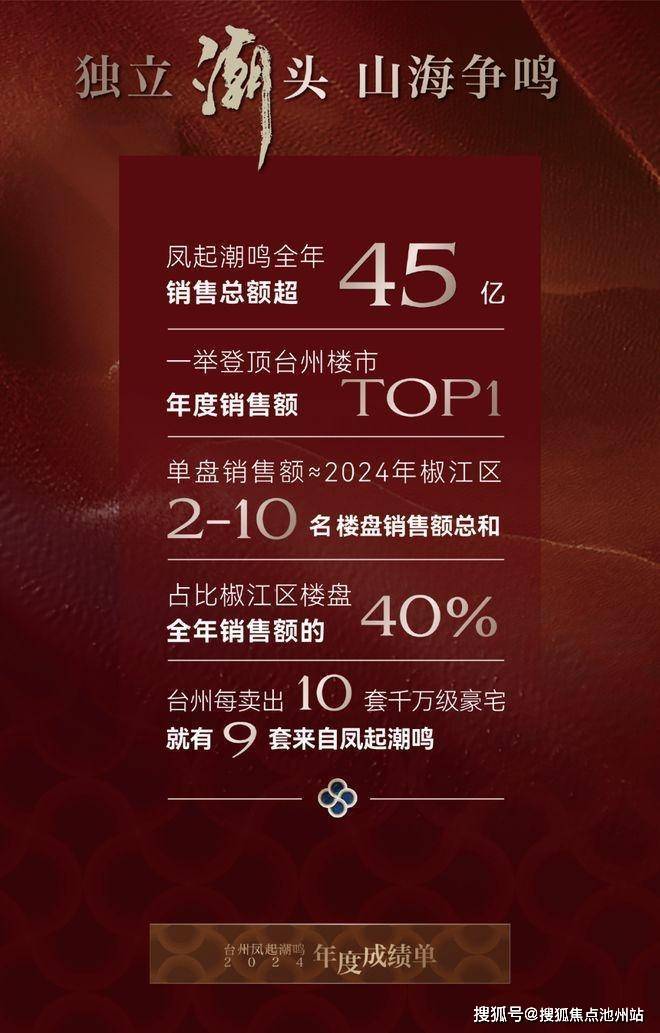 2024年,凤起潮鸣仅用不到一年时间,销售额超45亿,登顶台州楼市年度销售额的销冠(数据来源台州房管公众号、台州透明售房网等)。这一个盘的数据,就相当于去年椒江第二名到第十名热销盘销售额的总和。