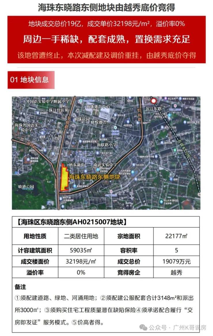 越秀以总价19亿元拿下海珠东晓路宅地之后,市场随后传出消息,