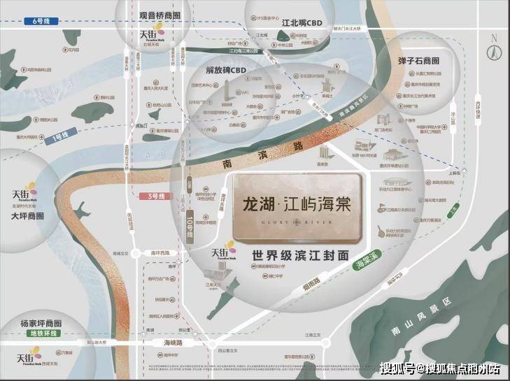 龙湖龙智造联袂昕晖集团与鸿山集团,择址南滨路中轴地段,推出"龙湖·江屿海棠"项目,进一步丰富区域高端住宅供给。同时龙湖全国第100座天街——"江岸天街"预计于今年落地,以TOD模式,规划引进多个国际品牌首店,构筑滨江奢尚地标。以江岸天街代表的南坪商圈,将与弹子石商圈、解放碑CBD商圈联动形成世界滨江消费矩阵,激活城市商业能级跃升。