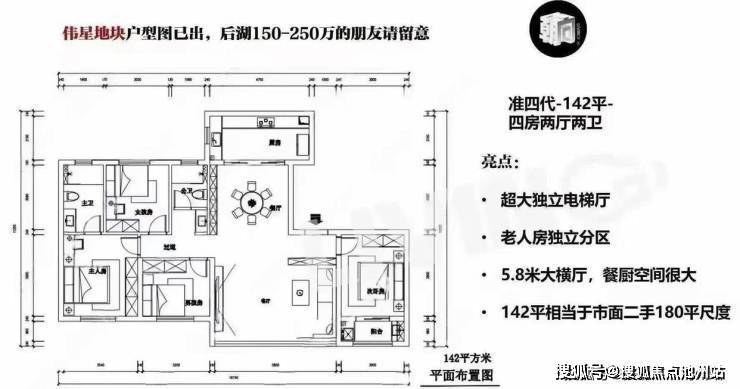 142m2四房南北通透+15.5米南向面宽可改造为"4+X"多功能空间