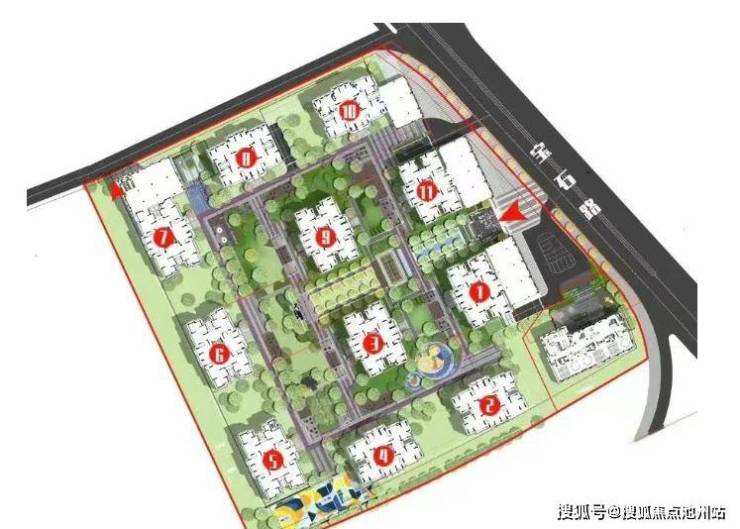 建筑布局:11 栋小高层呈行列式布局,楼间距合理,保障了充足的采光和通风,部分楼间距可达 500 米。