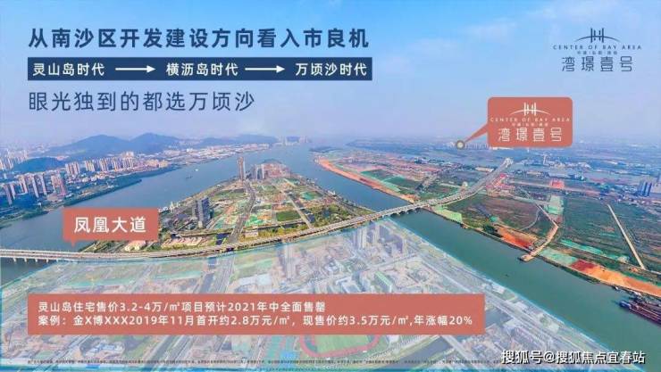 • 凤凰大道:南沙城市开发的黄金主轴,从蕉门区府到灵山岛、到横沥岛,下一个开发热点就在珠江街南沙枢纽区块,与其追高入市横沥岛,不如提前布局投资南沙枢纽区块,3公里10分钟车程直达横沥岛(最高楼面地价19140元/㎡),吹风直奔4字体,本案属于绝对的价格洼地。