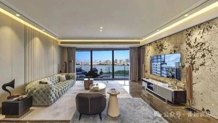 临江“一字”排开的一线江景洋房,建筑风格上也是考究地从“古典-当代-未来”人居的演绎。